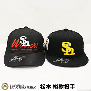 ⑨松本裕樹投手(背番号66):ソフトバンクホークス誕生20周年記念キャップ(新品未使用)*2、2025 パーソル CS パ 突破記念 選手着用キャップ*(使用済み)1 セット