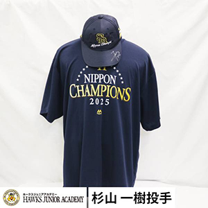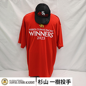 ③2025日本一記念選手着用Tシャツ(使用済み)、2025日本一記念選手着用キャップ(使用済み)*2 セット