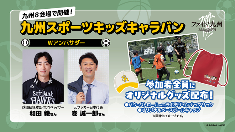 また、昨年に引き続き和田毅球団統括本部付アドバイザーがアンバサダーに就任。さらに、熊本出身で元サッカー日本代表の巻誠一郎氏もアンバサダーとして参加し、子どもたちとのスポーツ交流を盛り上げます。